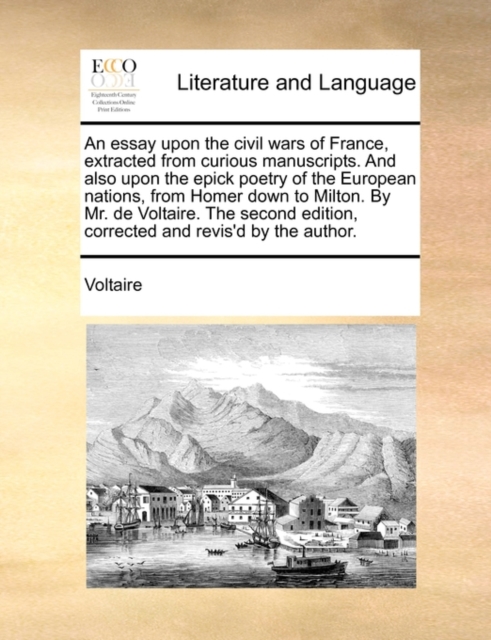 An Essay Upon the Civil Wars of France, Extracted from Curious Manuscripts. and Also Upon the Epick Poetry of the European Nations, from Homer Down to Milton. by Mr. de Voltaire. the Second Edition, Corrected and Revis'd by the Author.