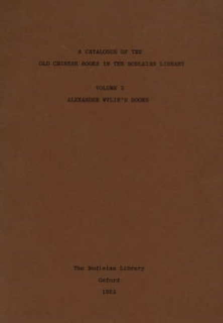 Catalogue of the Old Chinese Books in the Bodleian Library: Alexander Wylie's Books