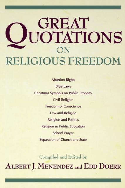Presenting a collection of quotations on religious freedom, this work covers various topics - from abortion rights, charitable choice, and creationism to pluralism, and more. It includes early church fathers, Enlightenment philosophers, anticlerical European statesmen, journalists, famous writers, judges, twenty-six presidents of US, and others.