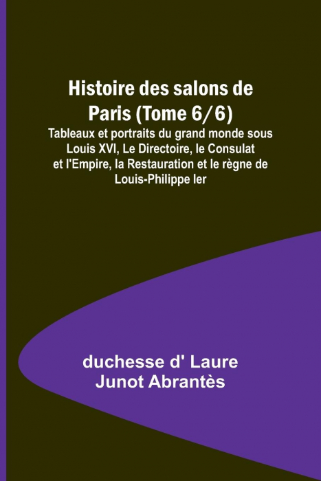 Histoire des salons de Paris (Tome 6/6); Tableaux et portraits du grand monde sous Louis XVI, Le Directoire, le Consulat et l'Empire, la Restauration et le règne de Louis-Philippe Ier, a été reconnu comme une ¿uvre majeure tout au long de l'histoire humaine, et nous avons pris des précautions pour assurer sa préservation en republiant ce livre de manière moderne pour les générations présentes et futures. Ce livre a été entièrement retapé, révisé et reformaté. Le texte est lisible et clair car ces livres ne sont pas créés à partir de copies numérisées.
