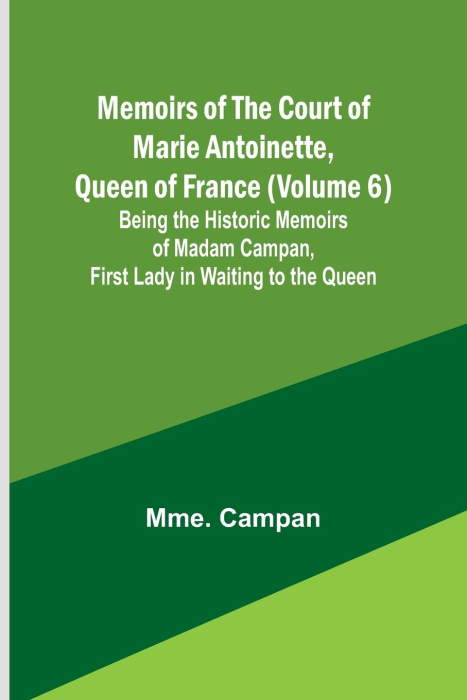 Memoirs of the Court of Marie Antoinette, Queen of France (Volume 6); Being the Historic Memoirs of Madam Campan, First Lady in Waiting to the Queen, has been considered important throughout human history. In an effort to ensure that this work is never lost, we have taken steps to secure its preservation by republishing this book in a modern format for both current and future generations. This complete book has been retyped, redesigned, and reformatted. Since these books are not scans of the authors' original publications, the text is readable and clear.