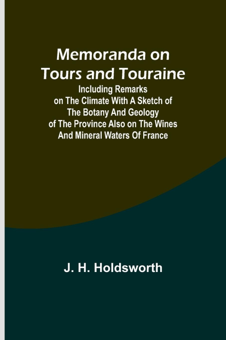 Memoranda on Tours and Touraine; Including remarks on the climate with a sketch of the Botany And Geology of the Province also on the Wines and Mineral Waters of France, has been considered important throughout human history. In an effort to ensure that this work is never lost, we have taken steps to secure its preservation by republishing this book in a modern format for both current and future generations. This complete book has been retyped, redesigned, and reformatted. Since these books are not scans of the authors' original publications, the text is readable and clear.