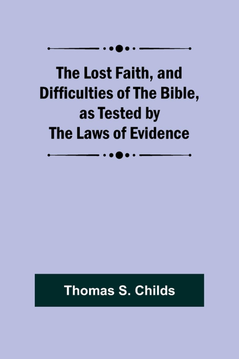 The Lost Faith, and Difficulties of the Bible, as Tested by the Laws of Evidence, has been considered important throughout human history. In an effort to ensure that this work is never lost, we have taken steps to secure its preservation by republishing this book in a modern format for both current and future generations. This complete book has been retyped, redesigned, and reformatted. Since these books are not scans of the authors' original publications, the text is readable and clear.