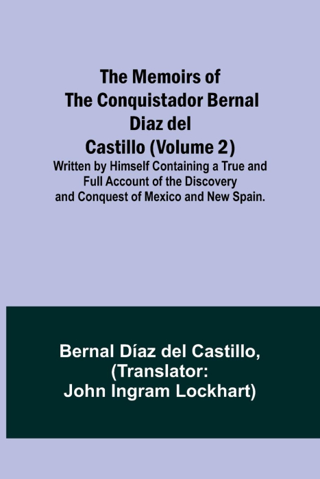 The Memoirs of the Conquistador Bernal Diaz del Castillo (Volume 2); Written by Himself Containing a True and Full Account of the Discovery and Conquest of Mexico and New Spain., has been considered important throughout human history. In an effort to ensure that this work is never lost, we have taken steps to secure its preservation by republishing this book in a modern format for both current and future generations. This complete book has been retyped, redesigned, and reformatted. Since these books are not scans of the authors' original publications, the text is readable and clear.