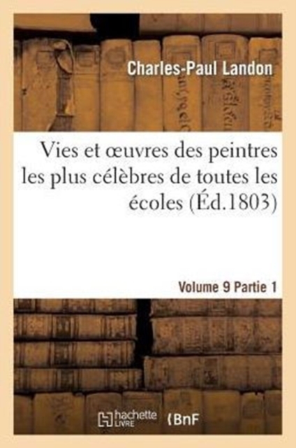 Vies et oeuvres des peintres les plus celebres de toutes les ecoles. Vol. 9, part.1 / . Recueil classique, contenant l'oeuvre complete des peintres du premier rang, et leurs portraits... reduit et grave au trait, d'apres les estampes de la Bibliotheque nationale...; Publie par C.-P. Landon, ...Date de l'edition originale: 1803-1817Sujet de l'ouvrage: Peintres -- BiographiesPeintres -- PortraitsCe livre est la reproduction fidele d'une oeuvre publiee avant 1920 et fait partie d'une collection de livres reimprimes a la demande editee par Hachette Livre, dans le cadre d'un partenariat avec la Bibliotheque nationale de France, offrant l'opportunite d'acceder a des ouvrages anciens et souvent rares issus des fonds patrimoniaux de la BnF.Les oeuvres faisant partie de cette collection ont ete numerisees par la BnF et sont presentes sur Gallica, sa bibliotheque numerique.En entreprenant de redonner vie a ces ouvrages au travers d'une collection de livres reimprimes a la demande, nous leur donnons la possibilite de rencontrer un public elargi et participons a la transmission de connaissances et de savoirs parfois difficilement accessibles.Nous avons cherche a concilier la reproduction fidele d'un livre ancien a partir de sa version numerisee avec le souci d'un confort de lecture optimal. Nous esperons que les ouvrages de cette nouvelle collection vous apporteront entiere satisfaction.Pour plus d'informations, rendez-vous sur www.hachettebnf.frhttp: //gallica.bnf.fr/ark: /12148/bpt6k6210029f